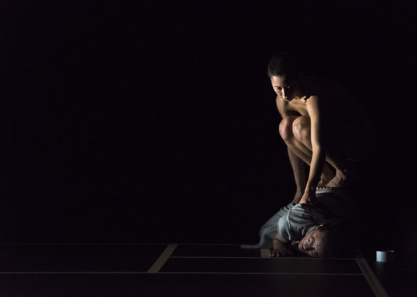 La dynamique est celle d’un crescendo qui vous embarque, un peu comme le Boléro de Ravel, alors que l’espace disponible décroît et que la bande son continue à vitesse égale, sur sa lancée lumineuse. Entre Lane et Steiner, la relation fusionnelle éclate avec la première division spatiale. Se noue alors un dialogue des corps entre complicité, tendresse, lutte, et jeu de domination dans une promiscuité grandissante. Mais justement, plus les corps sont contraints de se rapprocher, plus mes âme semblent s’éloigner l’une de l’autre. Après l’ultime division de l’espace disponible, il leur est juste possible de poser les pieds au sol.