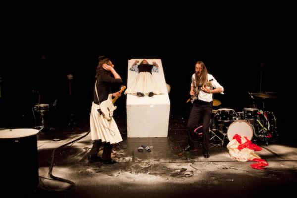 Mais on peut aller plus loin encore. Il y a le pluridisciplinaire, le transdisciplinaire, l’adsiciplinaire… et finalement peut-être un univers carrément antidisciplinaire, comme dans Fruit of Labor de Miet Warlop, où concert rock, machines et appareils farfelus, danse, théâtre etc. se fondent dans un esprit absurde et dadaïste [lire notre critique]. Miet Warlop, Flamande nouvelle génération, crée dans la liberté la plus totale et mélange les codes de tous les genres spectaculaires dans une fresque scénique où rien ne se passe comme on l’imagine.