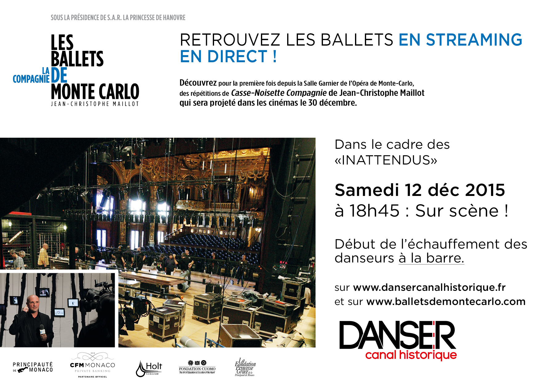 Sur notre page "Streaming" découvrez pour la première fois depuis la Salle Garnier de l'Opéra de Monte-Carlo, des répétitions de Casse-Noisette Compagnie avec Jean-Christophe Maillot et Les Ballets de Monte-Carlo.