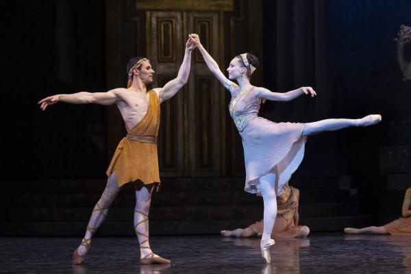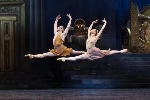 Valentine Colasante dans le rôle de Sylvia se montre assez impériale, maîtrisant parfaitement les chausse-trapes qui s’ouvrent sous ses pieds et s’appellent tours en attitudes devant, équilibres impeccables, ou pizzicati d’enfer. Héloïse Bourdon, la Diane qui lui donne la réplique est tout autant impérieuse et impressionnante. Guillaume Diop campe un Aminta, très élégant, avec une belle allonge et un phrasé très séduisant, mais reste un peu fragile dans les tours attitudes ou arabesques de sa première variation. Jack Gasztowtt en Éros, est tout aussi brillant et explosif dans ses sauts. L’Endymion de Lorenzo Lelli est une belle surprise avec un très joli travail du bas de jambe et du pied, une belle coordination des bras et du buste. Aurélien Gay campe un Faune très convaincant, avec une dynamique saltatoire impeccable et Hohyun Kang une Naïade d’une fluidité parfaite et merveilleusement silencieuse. Mention spéciale pour le trio Daniel Stokes, Luna Peigné et Rémi Singer-Gassner dans le tableau « paysan » de l’acte I.