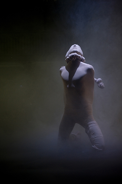 En son corps, les images de la danseuse orientale et du gladiateur se superposent et sa sensualité assumée est traversée par une tonalité masculine et saccadée, résultant d’une force moins musculaire qu’intérieure. Et si son gestus peut frôler les arts martiaux, celui-ci exprime une simple lutte pour le droit d’exister: « Je danse pour revendiquer ma place.» Dès le premier tableau, il charge son corps de violence, subissant des coups imaginaires ou leur opposant une résistance provocatrice.