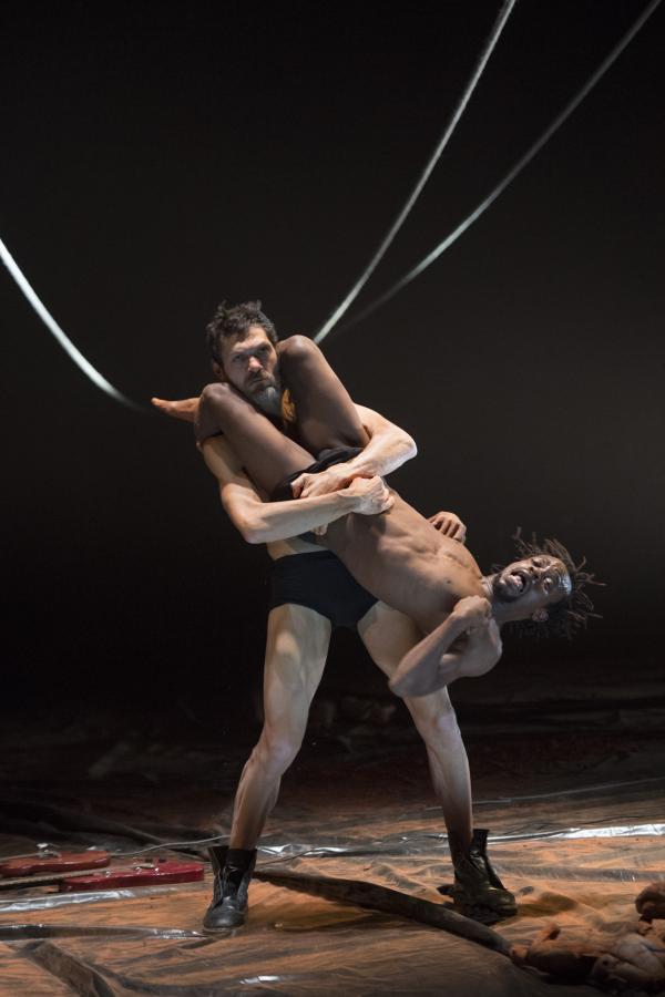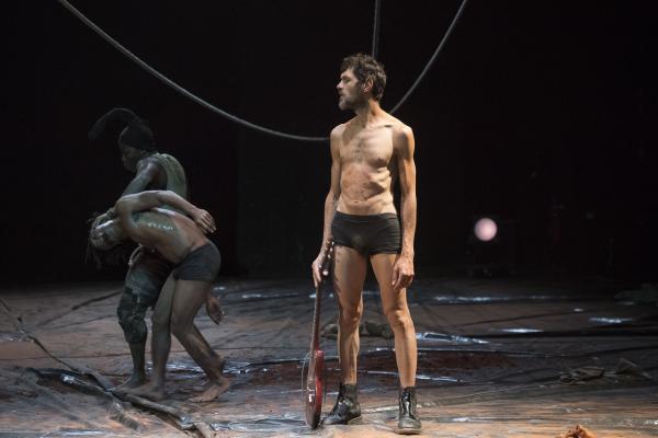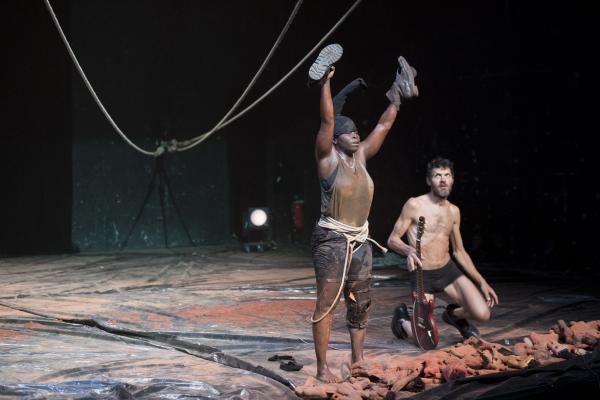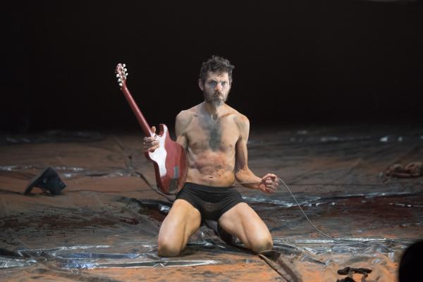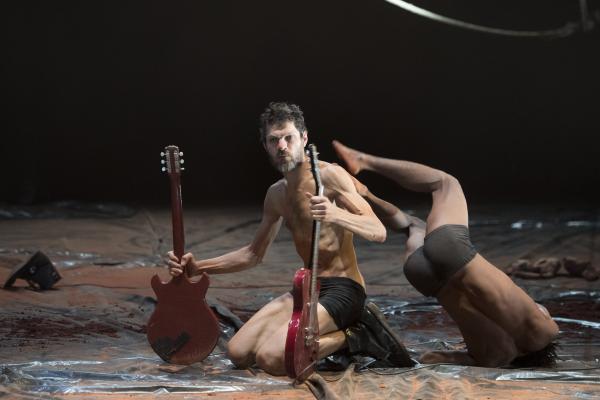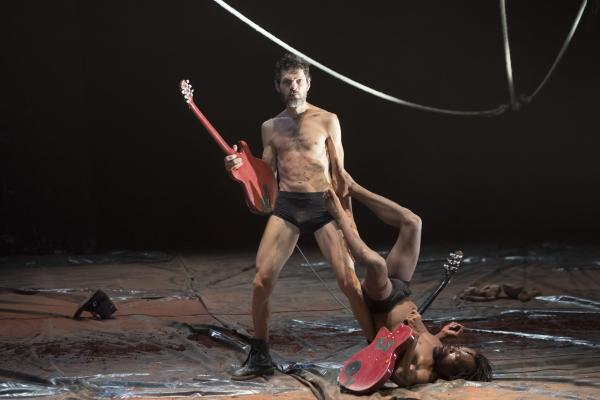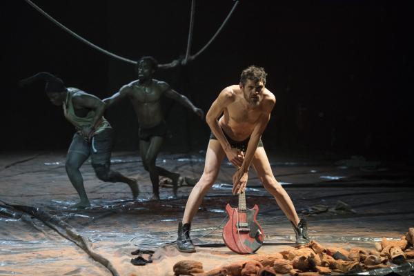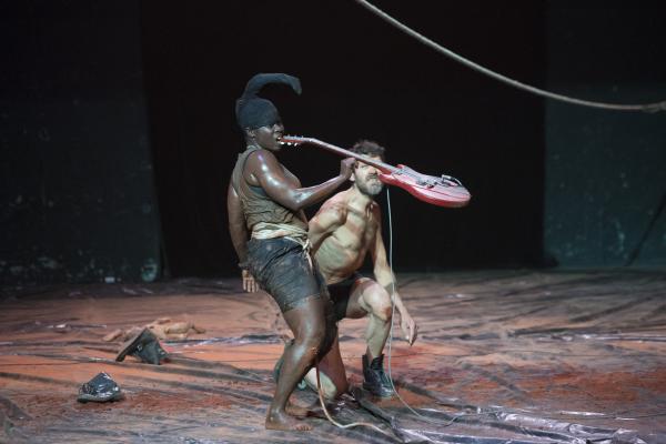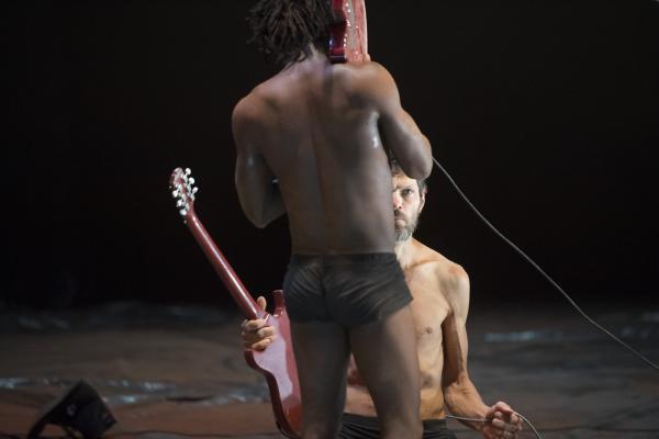 Un troisième protagoniste est un Européen, un rocker armé de sa guitare, qu'il n'a crainte de malmener dans la fureur des actions. Et le voilà ramené aux régimes des puissances symboliques manifestes, quand Nadia Beugré s'autorise à le déshabiller complètement – ce qui n'est pas n'a encore rien de commun dans les représentations chorégraphiques d'Afrique. Alors que la musique est pour beaucoup dans la tenue d'ensemble de Tapis rouge, la forme de prise de pouvoir symbolique que la chorégraphe s'autorise sur le corps musicien n'est pas mince de signification, quand Européens et Africains se retrouvent sur une scène. Et dans une salle. Avec toute la mémoire, si ce n'est le présent, des rapports de sujétion que cela charrie.