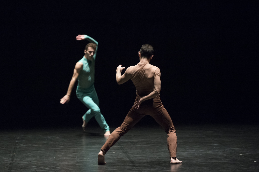 Teshigawara fractionne la figure du monstre, soit en un duo plus un soliste ou bien en trois solos, et on trouve, tout de même, à l’intérieur de cette constellation ternaire, un corps plus fluide, à la capacité de se désosser à souhait, flottant entre le bleu et le vert, comme pour incarner le vent et les eaux. Visiblement bien inspiré par sa rencontre avec les danseurs du Ballet de Lorraine, Teshigawara se montre ici bien plus variable et moins prévisible que dans ses duos avec Rihoko Sato.