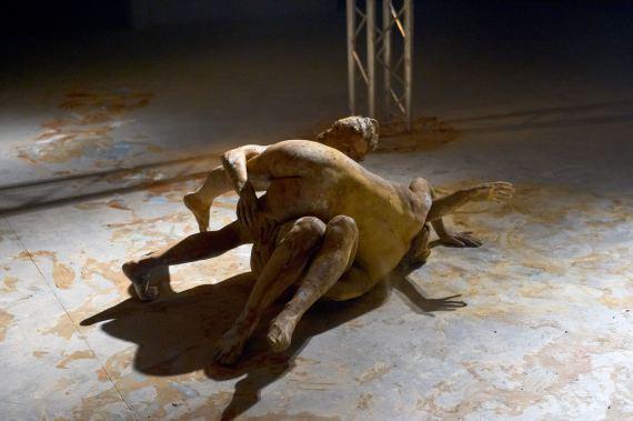 En France, si on veut se faire bousculer en tant que spectateur, il faut voir une création de Katalin Patkai. En général… Dans Jeudi, on ne sait trop pourquoi elle veut nous donner cette vision bucolique et exotique, à partir de Vendredi ou les limbes du Pacifique de Michel Tournier, inspiré de l’histoire de Robinson Crusoé. Justine Bernachon et la chorégraphe forment un duo fusionnel qui émerge d’un état absolument « sauvage » et donc innocent en perdant petit à petit sa coloration cutanée initiale. Jeudi se lit un peu comme un manifeste par trop évident. Qui ne partagerait pas le phantasme d’un retour au paradis perdu ? Mais plus la pièce avance, plus le duo entre dans une citation (ironique ?) de gestes et attitudes stéréotypes de notre civilisation. De temps en temps, et c’est un brin trop rare, émerge une image plus profonde, comme celle des deux femmes allongées sur la traverse du portique, comme dans une couronne d’arbre au milieu de la forêt sauvage. Malgré ses contradictions internes, ce Jeudi est rafraîchissant, sans vraiment dévoiler sa raison d’être. Petit problème donc, car nous pourrions observer les deux Ève un jeudi entier, sans discerner où se situe la révélation.