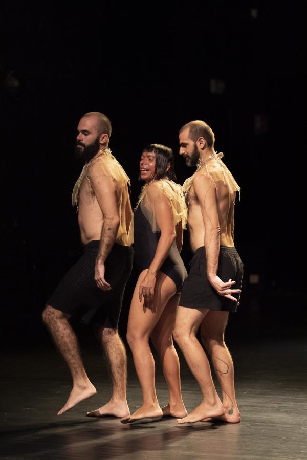 « Aujourd’hui Bolsonaro laisse libre cours à l’exploitation de la forêt et le capitalisme détruit la forêt pour ses propres besoins, pour s’enrichir. Ce n’est pas seulement la forêt qui est physiquement détruite, mais aussi tout un savoir indigène », dit Evelin qui a vécu avec les Indiens pendant trois mois quand il avait neuf ans et affirme que cette expérience a changé son regard sur la vie. Mais quand il s’agit de faire exister l’âme de ces peuples et de créer l’émotion de la rencontre, on se tournera plutôt vers une certaine Lia Rodrigues. Le but de la pièce d’Evelin est aussi difficile à identifier que l’uirapuru dans la forêt tropicale.