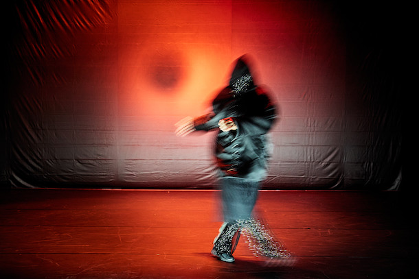 Un foulard devient couronne, une capuche masque. Écho visuel à ces silhouettes de lutte, mais aussi à une mémoire en miettes. Les gestes glissent du hip-hop au ballet en passant par des citations théâtrales. Il faut, dit la voix, « ouvrir les ecchymoses et laisser sortir un peu de sang bleu pour leur montrer ». Cette phrase – répétée jusqu’à l’obsession – devient incantation, presque une litanie. Elle dit l’urgence à dévoiler, à exposer, à faire preuve.