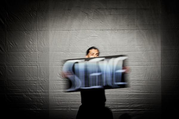 Au détour de son solo présenté en Avignon, il danse seul, mais jamais vraiment. Il est accompagné de voix, de souvenirs, de gestes empruntés, tordus, retournés. Parmi eux, la danse graphique et minimaliste de Lucinda Childs sur un sample de la bande son de l’opéra Einstein on the Beach, opéra en quatre actes créé en 1976 au Théâtre Municipal d’Avignon dans le cadre du Festival. Il est le fruit de la collaboration entre le metteur en scène Robert (Bob) Wilson qui décédera le 31 juillet de cette année, le compositeur Philip Glass et la chorégraphe Lucinda Childs. Plus loin le danseur et chorégraphe refigure le goût de la diagonale si chère à l’Américaine pour y suspendre sa chanson de gestes. Et se fige dos public alors que résonne l’un des éléments centraux du livret d’Einstein on the Beach, la répétition de séquences de chiffres — « one, two, three… eight… » — au service d’une atmosphère rythmique et visuelle, indissociable des lumières, de la musique et des gestes scéniques.