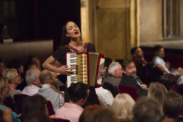 De l’Italie donc, on ne verra pas grand chose sinon une inclinaison pour le mortuaire, des musiques, une scène hallucinante qui installe le chaos sur scène et le fait disparaître aussitôt, un sketch inoubliable de restaurant italien hilarant où officient Nazareth Panadero, Cristiana Morganti et Aida Vainieri, et une veuve noire et boîteuse interprétée par Dominiqiue Mercy qui arpente la scène.