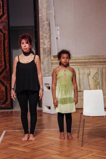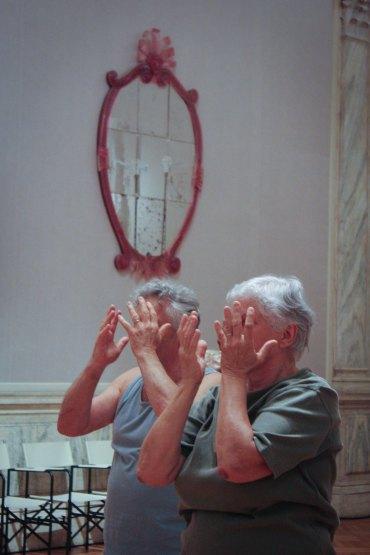 Ces « tableaux » portés par des amateurs, reflétaient, plus que tout autre spectacle, l’intitulé de cette Biennale : La dignità del gesto (la dignité du geste).Réunis dans la salle des colonnes de la Ca’Giustinian, ces hommes et ces femmes font et refont les gestes simples qui relient chacun à l’humanité.