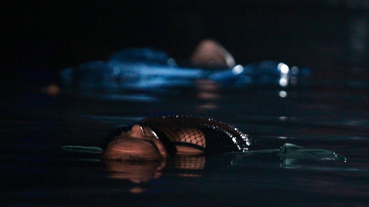 En explorant le labyrinthe qui s’offre alors aux visiteurs, on passera à un moment sous les gradins de la salle Jean Vilar – une première et dernière occasion de voir cet envers du décor avant que ne débutent les travaux de rénovation – pour assister à la projection en boucle de Cultes, film culte de (La)Horde. Mais on le voit ici à travers un rideau de pluie, au moment où un orage éclate à l’écran, au-dessus de la foule venue assister à un concert. Les images bucoliques de jeunes plongeant dans un lac ou y flottant dans une tranquillité post-romantique – comme pour entrer dans le monde des rêves – se prolongent en performance dans le bassin d’eau installé entre le public et la scène. Le désir de sensations fortes et l’enivrement qui font la matière de Cultes résonnent naturellement avec l’événement auquel on participe en tant qu’explorateur.
