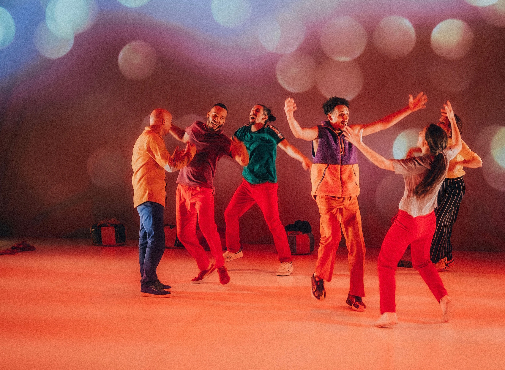 Puis, sur la splendide musique d’Hakim Hamadouche, les six interprètes se rejoignent sur les sons d’un mandoluth. Une danse dynamique, énergique, diablement difficile à réaliser entre équilibres sur une main, rotations et mouvements acrobatiques en l’air.