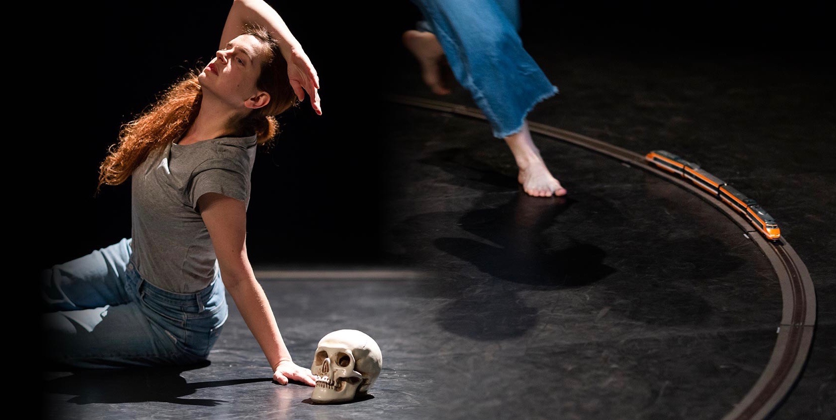 Le temps est donc naturellement une sorte de fil rouge de cette édition qui s’ouvre sur MMDCD de et avec Christine Armanger. Elle constitue sur scène une sorte de vanité contemporaine, faite de son propre corps, d’un crâne (pas besoin de l’ouvrir pour se dire qu’un jour, il y avait un cerveau dedans) et d’une rame de TGV qui fait ses rondes, pendant qu’une voix compte les secondes. Armanger s’empare du jouet le plus typiquement masculin qui soit, pour le faire tourner en rond, dans un monde qui n’avance pas. C’est ce qui s’appelle avoir du crâne !