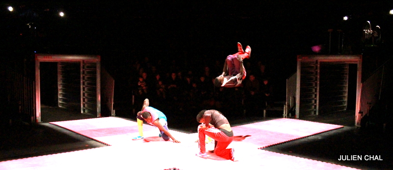 Ce rond de cirque est le lieu de tous les possibles et nous sommes autant dans un aéroport, sur un chantier ou dans un château. Imaginons un instant qu’un nouveau Fernand Léger, un graffeur peut-être, venait là pour saisir des images de cirque, il trouverait les mêmes sensations qu’en 1950. Sueur et vibrations. Le circassien tel qu’il a inspiré les peintres est l’antithèse de la ballerine éthérique. Il ne prétend pas à la légèreté, il la conquiert sous nos yeux. La ballerine ne sent pas la sueur. L’acrobate, oui. Il a le droit, c’est un homme. Et I’m a man décline cette identité masculine, peut-être un peu trop portée aux nues. Où sont les filles et leur droit de cité? On verra, la prochaine fois…