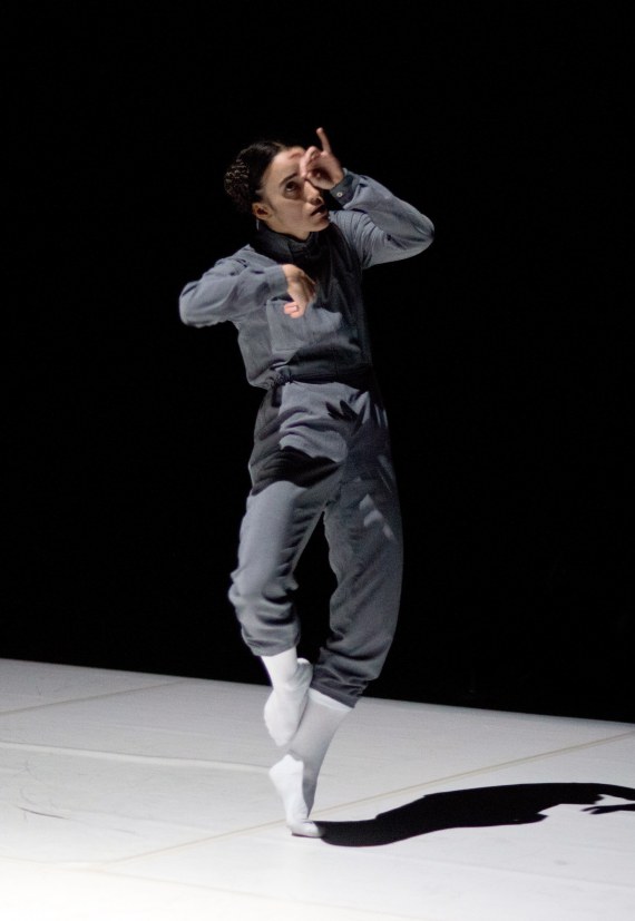 La gestuelle, stylisée, s’attache davantage à évoquer un Charlie Chaplin ou des mouvements stéréotypés, tout comme peut l’être la beauté dans une vision de l’Amérique triomphante. Lali Ayguadé est une interprète exceptionnelle qui « deale » à merveille avec cet environnement saturé de signes. Malgré de belles trouvailles ce solo laisse néanmoins un peu sur sa faim, d’une part parce que l’on attendait sans doute une gestuelle plus radicalement différente de Russia, d’autre part, car on sent qu’il manque sans doute le reste de Maryland pour que la pièce puisse se déployer totalement.