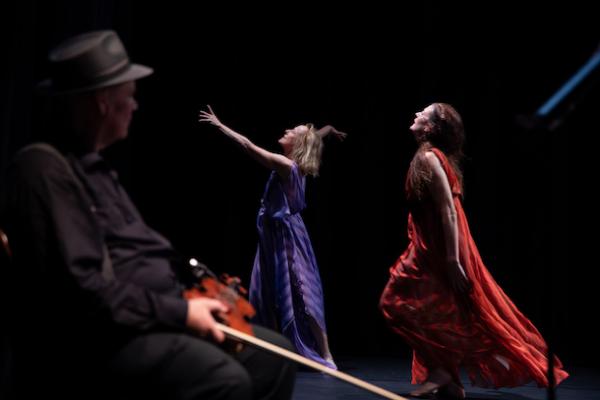 Colette Malye a choisi d’accompagner les duos et les solos de danse de morceaux composés par Alexander Balanescu joués par lui et la violoncelliste virtuose Caroline Sypienewski qui figurent pour la plupart dans l’album Maria T (2005) du Balanescu Quartet. Le violoniste a diffusé au finale une berceuse enregistrée par une chanteuse roumaine évoquant le solo Lullaby créé par Isadora Duncan en 1914 après la disparition de ses enfants. Les thèmes musicaux fusionnant avec finesse traditionnel d’Europe centrale et minimalisme américain. Ces thèmes rythment le spectacle, structurent la pièce une heure durant, donnent grain à moudre aux danseuses.