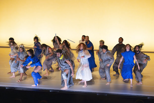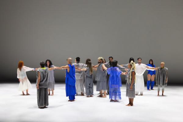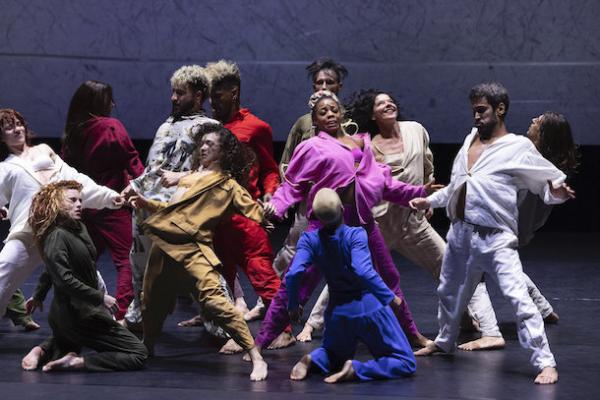Un premier étonnement, la grande proximité formelle autant que dramaturgique de Fôlego et Bocca Abissal malgré que plus de trois ans séparent les deux pièces. Fôlego (2022) est la première création de Rafaela Sahyoun pour le BCSP, créée à l'occasion du 40e anniversaire du Centre culturel de São Paulo. Nommée pour le Prix de danse APCA 2022 dans la catégorie Performance, Fôlego a été reprise pour une saison au Théâtre municipal de São Paulo en janvier 2023, à l'occasion du 55e anniversaire du BCSP, avec une certaine réussite qui explique la commande de Boca Abissal, présentée pour la première fois entre le 23 mai 2025, au Teatro Municipal de São Paulo dans le cadre de la saison 2025 de la compagnie, qui mettait également à l’honneur une autre création inédite signé Michelle Moura (mieux connue sous nos latitudes). Ainsi, trois ans plus tard les deux pièces de Rafaela Sahyoun se répondent au point de sembler avoir été composées ensemble. Même grand effectif, seize pour Fôlego -- qui signifie « souffle » -- et dix-huit pour Boca Abissal « bouche abyssale », (mais l'effectif n'est pas une donnée primordiale, il suffit que cela fasse « beaucoup ») donc deux univers élémentaires (air et eau), même mouvements organiques inspirés de la nature, structuration qui part du groupe vers l'espace avec occupation de tout le plateau, mouvements fortement individualisés. A défaut de faire complètement sens, cela fait au moins cohérence.