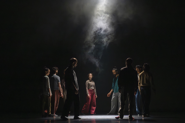 Au festival de danse de Cannes, Mickaël Le Mer livre une création d’inspiration Zen, à l’énergie giratoire et calligraphie les corps de neuf interprètes hors-normes.