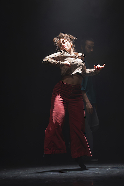 Tout commence par la main d’une danseuse qui prend la lumière comme un poisson nage dans un rayon de soleil. Dans la pénombre, elle trace des lignes invisibles, comme une écriture en suspens, esquissant une matière originelle, une humanité en train de se façonner, avant de déployer une gestuelle singulière, mélange d’extrême souplesse et de locking, avec des cambrés renversants. Si la référence au pinceau lumineux qui nimbe le premier bras levé dans le Boléro de Béjart est réelle, celle-ci joue plutôt comme un clin d’œil pour initiés.