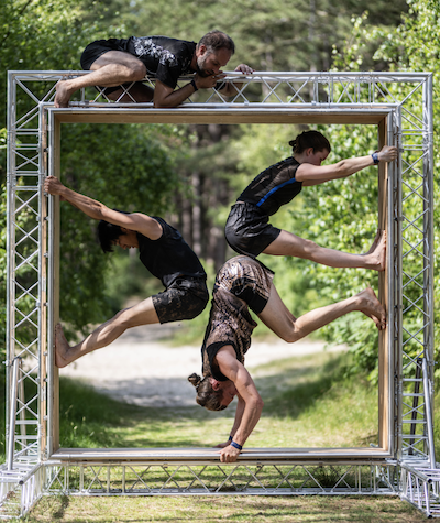 « Comment définir le cadre d’un tableau ? Que se passe-t-il si on enlève le cadre ? Ou vice-versa : si on enlève l’œuvre d’art et que l’on regarde simplement le cadre ? ». Telle est la problématique posée par Alexander Vantournhout pour Frames - littéralement cadres en français - aux performeurs de sa compagnie Not Standing.