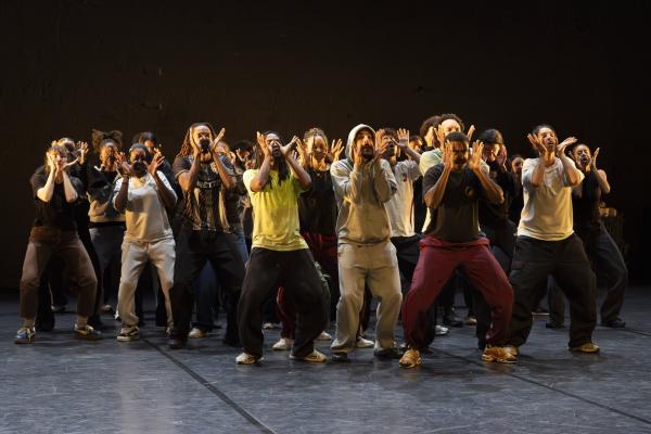 Ils sont maintenant quatre, visages masqués, à s’emparer du plateau. Ils envoient valdinguer les fleurs, les portent comme un cercueil. L’un d’entre eux, assis, tient sa guitare telle un fusil. Comme le confiait Marina Gomes à Agnès Izrine, la « guitare » n’est-elle pas à Marseille le surnom donné à la kalachnikov ? Une nouvelle bande son s’invite : « Ils nous voient comme des voyons, des bandits, mais il n'y a pas de méchants ici, sauf ceux qui font du trafic ». Une foule envahit la scène : une douzaine de danseurs et danseuses qu’accompagnent une trentaine d’amateurs. Entre unissons en groupe et solos, entrée et sorties, ils forment sur les notes que Jean-Sébastien Bach a inspirées à Arsène Magnard une communauté vivante et vibrante. Dans leur élan, composé avec talent par Marina Gomes, ils finissent par entonner en chœur sur un air bien connu « Frère Bach ou es-tu ? ». À moins que ce ne soit « Frère BAC » ?