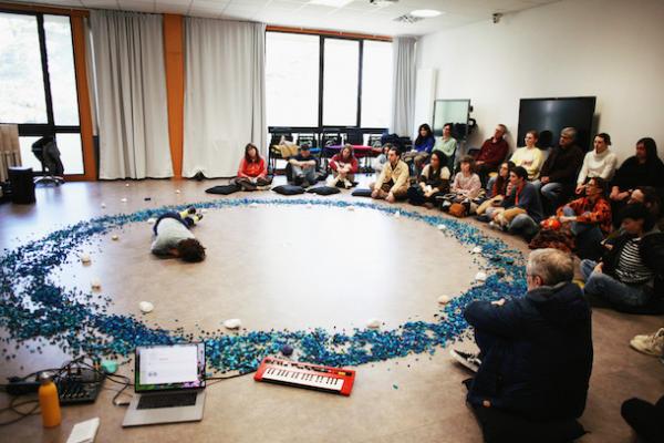 Accompagnée d’un groupe d’amateurs et d’amatrices, Elise Lerat met en mouvement avec Replay nos plus beaux souvenirs de cinéma, Chantons sous la pluie compris. Laurent Cebe organise dans sa conférence performée Intervalles un dialogue ou l’humour le dispute à l’absurde avec l’astrophysicien Roland Lehoucq. Avec sa toute nouvelle création Soutenir, David Drouard réunit danseurs et chanteurs et fait de leurs voix, interprétant des covers de PJ Harvey ou Leonard Cohen, une matière chorégraphique. Après avoir invité Sylvain Darrifourcq à ouvrir leur soirée avec son installation immersive créant du son et du mouvement FIXIN, la danseuse Elodie Guillotin et son frère musicien Florian imaginent dans You Should Have Left un espace instable empli de cymbales suspendues pour mieux explorer notre capacité à nous adapter. Destiné aux tout-petits, Sous la feuille de la chorégraphe Ariane Voineau et du musicien Josué Beaucage les invite à découvrir et ressentir une nature qui se déploie à leur hauteur. Avec [F]Mobil, Sarah Vaumourin livre un solo pour une danseuse et une harpe qui se déploie dans un cube de rideaux de fils blancs. L’épatant Mos de Ioanna Paraskevopoulou met en scène de multiples objets, un écran et deux danseurs qui recréent en direct la bande-son de séquences cinématographiques.