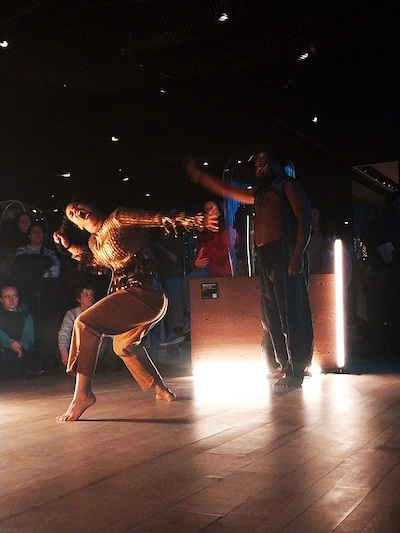 Malgré les diverses réminiscences, chaque instant apparaît ici comme pensé à partir de l’univers de la galerie, empreint de la magie des hommes et femmes, souvent aux pouvoirs royaux ou autres, sculptés par les Eyema-byeri, les Tchokwé et autres Sénoufo. Et s’il en est ainsi, c’est que l’univers des Fattoumi Lamoureux est depuis longtemps traversé par la fusion avec les cultures des peuples colonisés. Avec l’osmose des imaginaires sur laquelle se fonde Les Auras, les chorégraphes réaffirment à quel point le dialogue avec l’art plastique est une facette majeure de leur art. Face aux danseurs et au chanteur, les statues de la Collection Ladreit de Lacharrière se sont mises à vibrer comme probablement jamais avant, sur le sol européen.