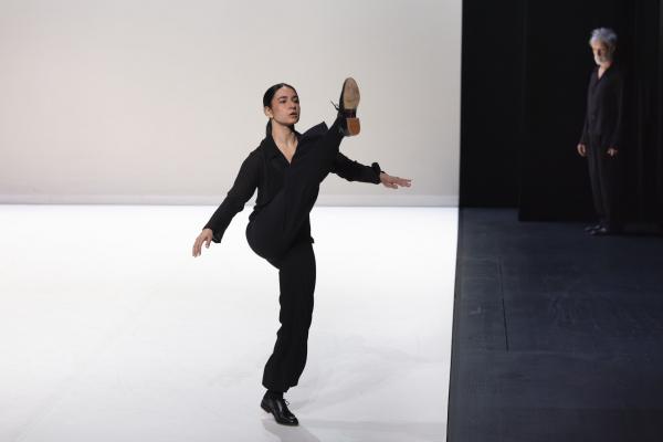 Les cinq enchaînent d’abord moult solos où chacun s’exprime à sa manière, et pourtant tous semblent réunis dans le sentiment d’être les branches d’un même arbre. Nul besoin d’insister encore sur la profonde fusion entre la fine gestuelle de Muñoz et les préludes et fugues de Bach. Nous l’avions vue dans la forme solo, accompagnée sur scène par Dan Tepfer au piano en 2023 sur le même plateau, au Théâtre des Abbesses. Elle dit l’interpréter aujourd’hui bien différemment qu’à la création quand elle avait quarante ans. Ajoutons qu’en version famille, Muñoz ne peut céder son rôle à Federica Porello avec qui elle continue à interpréter la version solo en alternance. Sans parler du fait que pour la version quintette, les préludes et fugues choisies ne sont pas tout à fait les mêmes. Il s’agit bien d’une re-création.
