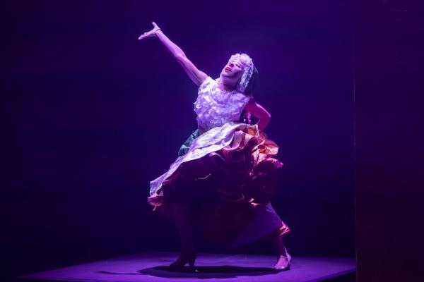 Face à lui, Ana Morales, apparaît corps gainé de chair, gestes fluides, sensualité assumée, présence magnétique. Elle glisse du zapateado le plus pur à des élans contemporains d’une finesse rare. Sa danse, ici, se déploie dans des zones nouvelles : plus risquées, plus charnelles, plus libres, vibratile. Elle ne cherche pas à séduire : elle s’abandonne, elle s’expose, elle s’invente. Ses bras sculptent l’air, ses hanches dessinent des courbes anciennes. Elle ne joue pas la Vierge : elle en réinvente la puissance.