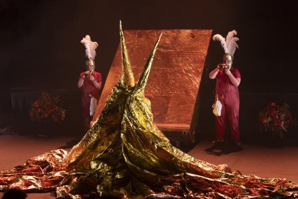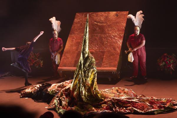 Dès les premières minutes, l’air se charge d’encens, les images s’entrechoquent, les corps s’embrasent. Antonio Campos, chanteur d’une intensité brute, découpe un agneau sacrificiel avec la précision d’un officiant antique : un geste qui pourrait être provocateur, mais qui ici devient symbole, offrande, matière première d’un théâtre viscéral. Les danseurs ramassent les morceaux avec la bouche, se les transmettent comme un secret archaïque.