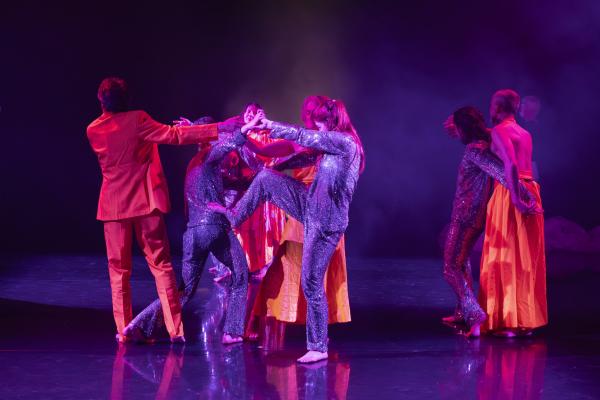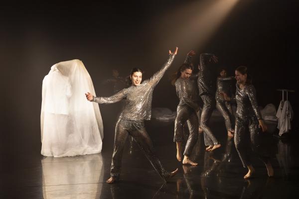 Daniel Larrieu parle de Charleston et, le hasard faisant bien les choses, Lionel Hoche esquisse alors un mouvement de « cross knees ». Après la prestation du couple Sagna-Hoche, arrivent les saluts de rigueur des artistes. Ceux-ci sont appuyés, somme toute exagérés, étant donné la durée de leur performance et la virtuosité requise. Sur des rythmes endiablés proches de ceux du Sacre du printemps de Stravinski, l’irruption de sept elfes incarnées par de jeunes étudiantes de danse contemporaines revêtues de collants agrémentés de paillettes argentées coupe court au semblant de ballet romantique.