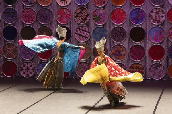 Le prologue, montage d’animations de célèbres peintures orientalistes et de photographies de l’époque coloniale, le tout retravaillé par l’IA, a le mérite de montrer que le propos de l’œuvre ne vise pas seulement l’Asie mais plus largement « l’ailleurs », tel qu’en témoigne une figure noire assise au premier plan. Même si la chorégraphe coréenne se concentre sur les pays asiatiques dont elle a étudié les danses, il s’agit bien du regard posé sur l’autre. Ce qui rappelle certaines démarches poétiques.