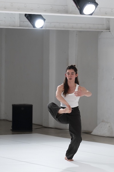 Et puis, retournement de situation. Ou presque. Motor Unit, créé à la Ménagerie de Verre dans le cadre des Inaccoutumés, est un double solo composé de deux unités – d'environ trente minutes chacune – dont la jeune Veyrunes est, indéniablement, la force motrice. C'est elle qui a sollicité la Hongroise Adrienne Hód et l'Islandaise Erna Ómarsdóttir pour que chacune lui transmette une part de matière chorégraphique, si ce n’est une part de leur ADN d’artiste. Veyrunes la fusionna ensuite avec la sienne, si bien que les solos appartiennent tout autant à l’interprète qu’à la chorégraphe. Elle raconte même qu’Ómarsdóttir n’a pas cherché à reconstituer son User’s manual, mais est partie de ses souvenirs et de la présence de Veyrunes, sans visionner la moindre captation de l’original. Quant à Hód, la démarche d’extraire une partition solo du contexte de la pièce de groupe ouvre de toute façon les portes vers une lecture nouvelle.