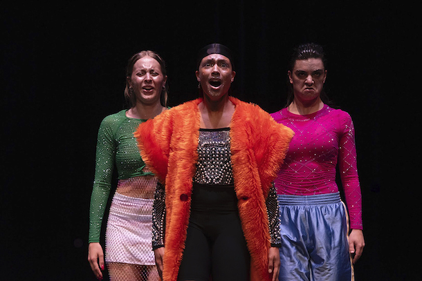 De la rencontre à la fusion, il n’y a qu’un pas. C’est ce pas qu’ont souhaité franchir Noé Chapsal, Loraine Dambermont et Viola Chiarini dans le cadre du projet FURieuseMent vÔtRe (le 17 janvier à 20h30 et le 18 à 17h, salle Jean Vilar) un plateau partagé on ne peut plus contrasté, faisant se succéder trois chorégraphes aux écritures singulières et débridées qui cherchent à explorer les dynamiques relationnelles. Trois univers, trois énergies, mais une même intensité, nous annonce le site de Suresnes Cité Danse. Dans le cas du solo de Loraine Dambermont Toujours de trois quart face ! inspiré de la vie du karatéka belge Johnny Cadillac (notre critique), cela ne fait aucun doute. Viscum de Noé Chapsal (notre critique) se présente comme un « duo viscéral », fulgurant et félin, tandis que Furiosa de Viola Chiarini, inspiré par la légende de Médée, est un travail de groupe à base de waacking.