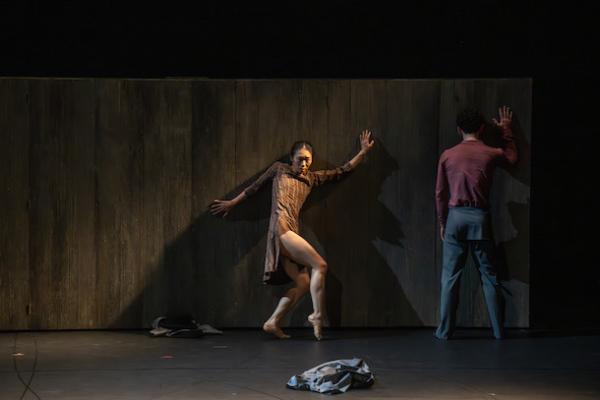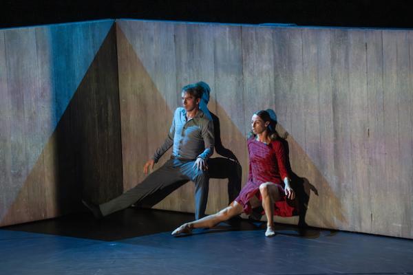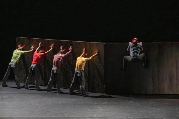 D’un bout à l’autre, Johan Inger refuse en connaissance de cause la musicalité que lui imposerait la musique. Les trois danseuses et six danseurs semblent en fait comme déconnectés de ce qui se joue dans la fosse. L’élément central de la scénographie est un mur amovible qui d’emblée repousse le danseur étoile Ramiro Gomez Samon, costume avachi et chapeau melon, surgissant du premier rang pour rejoindre la scène. Johan Inger installe immédiatement cette atmosphère inquiétante amplifiée par le jeu des portes qui s’ouvrent, se referment sur un vide angoissant, claquent et où les danseurs semblent perdus dans une course sans fin et sans but.