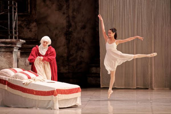 La chorégraphie de Massimo Moricone fait la part belle aux seconds rôles essentiels dans la progression dramatique. Charlotte Meier est une nourrice d’anthologie. Rien n’est surjoué et le chorégraphe a voulu qu’elle chausse les pointes pour la scène comique de la remise de la lettre de Juliette à Roméo. Elle compose avec Riku Ota un duo burlesque irrésistible. Marina Kudryashova est une Lady Capulet implacable qui impose un charisme maléfique dans ce rôle de caractère. Et Oleg Rogachev qui sera Roméo dans une autre distribution danse avec son aisance coutumière un Tybalt vigoureux.