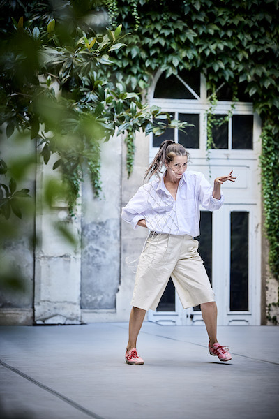 Accompagnée de Pauline Léger, juriste spécialiste en propriété intellectuelle, elle transforme le plateau en un laboratoire où la danse se confronte au droit, où le geste se heurte à l’article de loi et à la propriété intellectuelle. L’artiste lance ainsi un défi au public, aux institutions. Peut-être à elle-même.