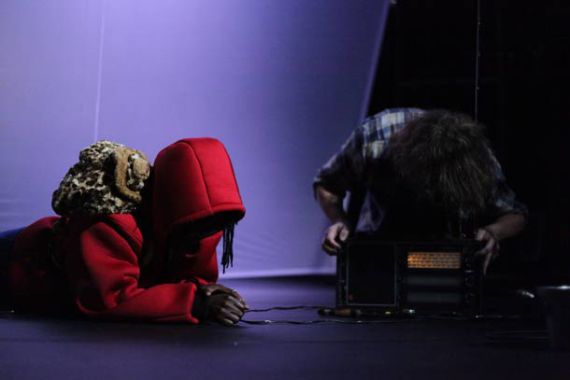 Elle-même égrène un récit factuel, limpide, ponctué de beaux chants, nourri de ses souvenirs. C'est cristallin, exact et glaçant, comme l'évidence la plus tranchante d'une machette en action. C'est vu par une enfant de douze ans. Cela se passe de toute hyperbole des effets de discours. Or c'est d'une horreur à hurler, pousser un cri universel, d'un corps convulsé, débordement éruptif, sol martelé ; chambardement d'accessoires, empilement de lambeaux textiles, errances en trajectoires fracassées, composition de personnage totémique. C'est le versant des corps meurtris, insurgés.