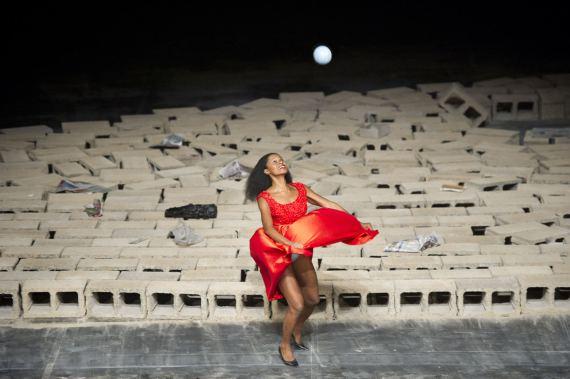 Non, le Théâtre de la Ville n’a pas (encore) entamé sa rénovation. Les matériaux de construction entreposés avenue Victoria (voir la photo) correspondent au décor de Palermo Palermo de Pina Bausch. En regardant de près, on peut y voir que les briques qui tombent ne sont pas minéraux mais en aggloméré, plus léger.