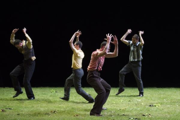 Les Théâtres de la Ville et du Châtelet présentent en ce moment des spectacles de Pina Bausch ? Vous ne trouvez plus de places ? Chaillot propose une alternative parfaitement valable, avec Avant toutes Disparitions de Thomas Lebrun. Le chorégraphe a lui-même imaginé une scénographie qui n’est pas sans rappeler, certes dans des dimensions réduites et épurées, celles de Peter Pabst. Pré vert, pré carré, terrain de jeu des relations humaines.