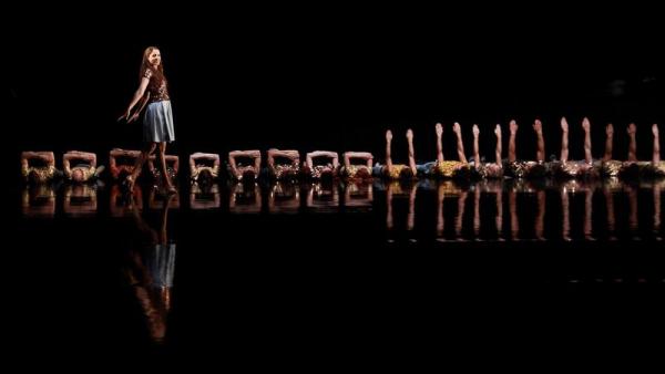 Dominique Hervieu : Jonah Bokaer est l’héritier de Cunningham, dans sa collaboration avec de grands musiciens ou de grands plasticiens. Il travaille depuis dix ans avec Daniel Arsham et incarne sa démarche dans un rapport entre exigence et sensibilité. Il a une sorte de présence désincarnée qui arrive à une sorte d’expérience plastique ou d’étrangeté organique. Cette expérience entre danse et art plastique devait trouver sa musique et c’est Pharell Williams qui va s’y atteler. Tout comme Olivia Ruiz, ce sont des musiciens pop qui posent la question de la création actuelle et développent des collaborations inédites dans un contexte inhabituel. Et il leur faut du courage pour aller vers des expériences artistiques où ils ont tout à perdre.