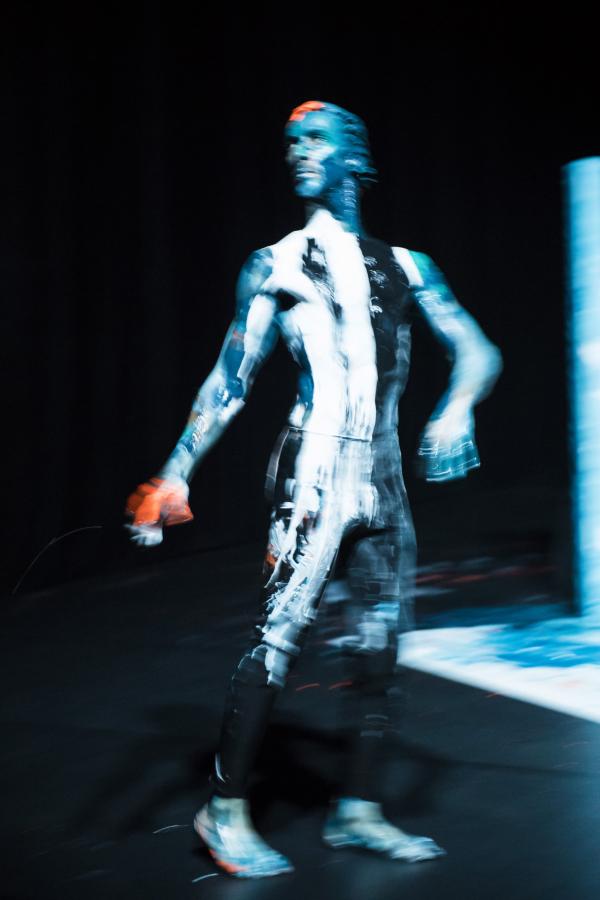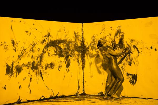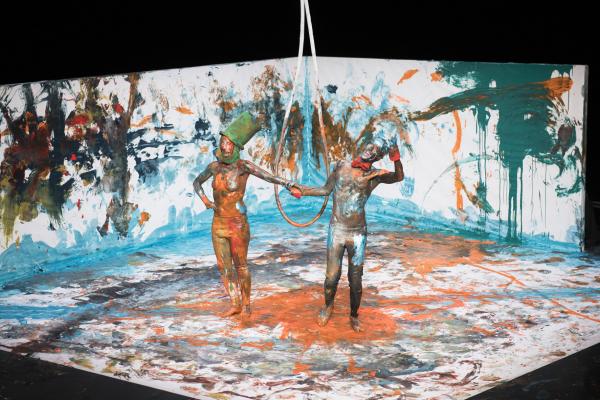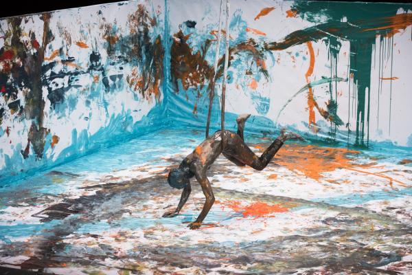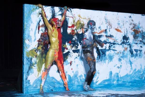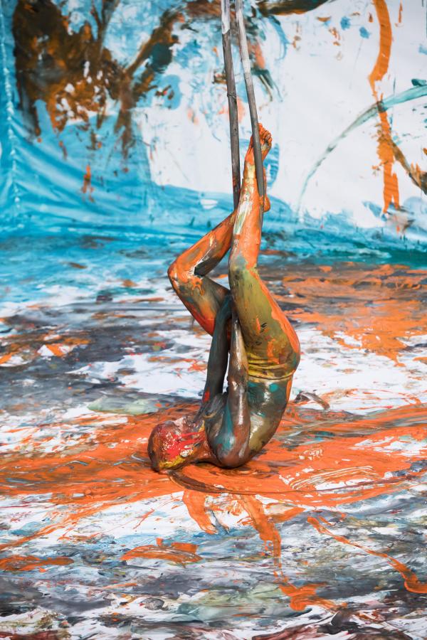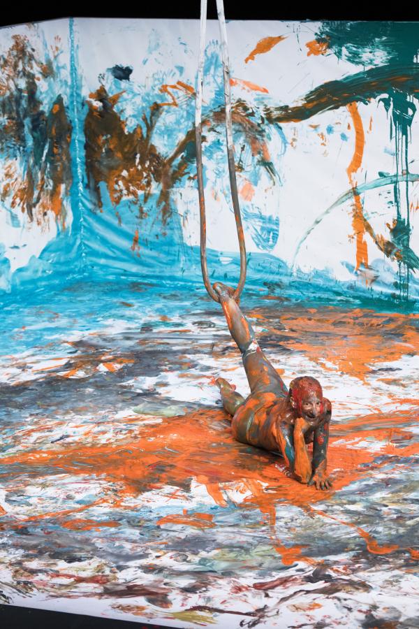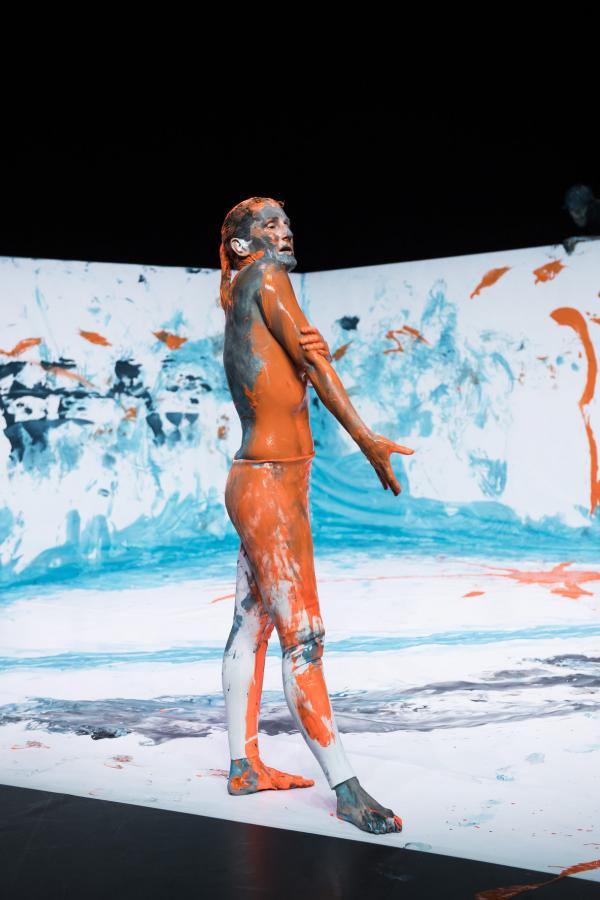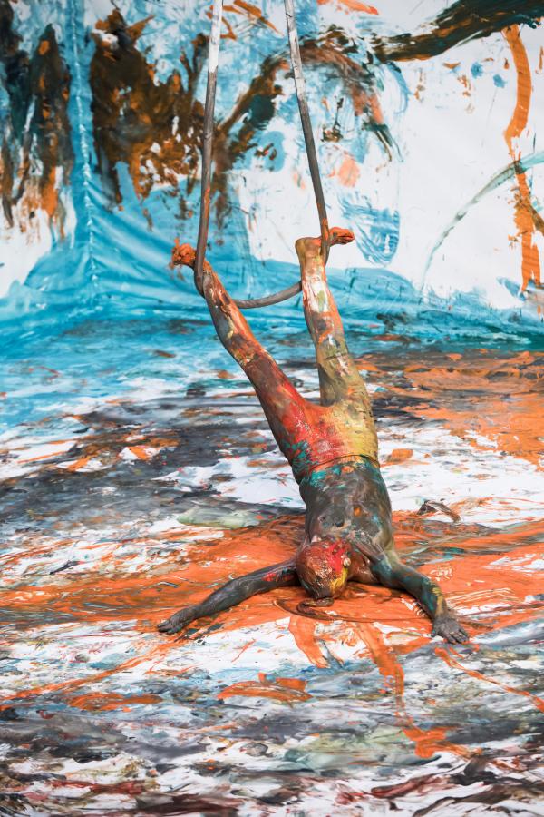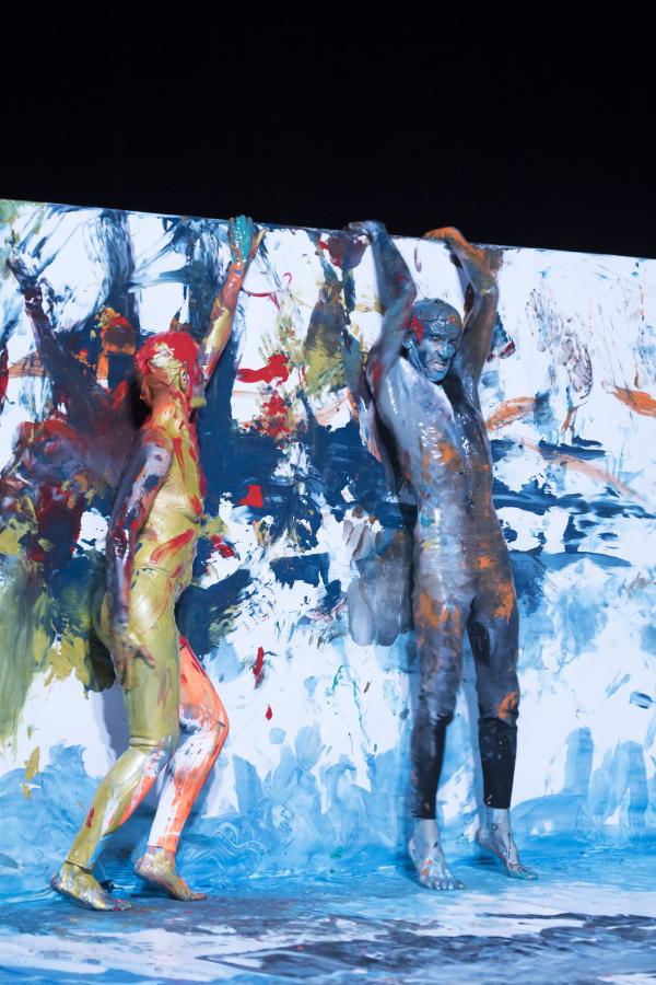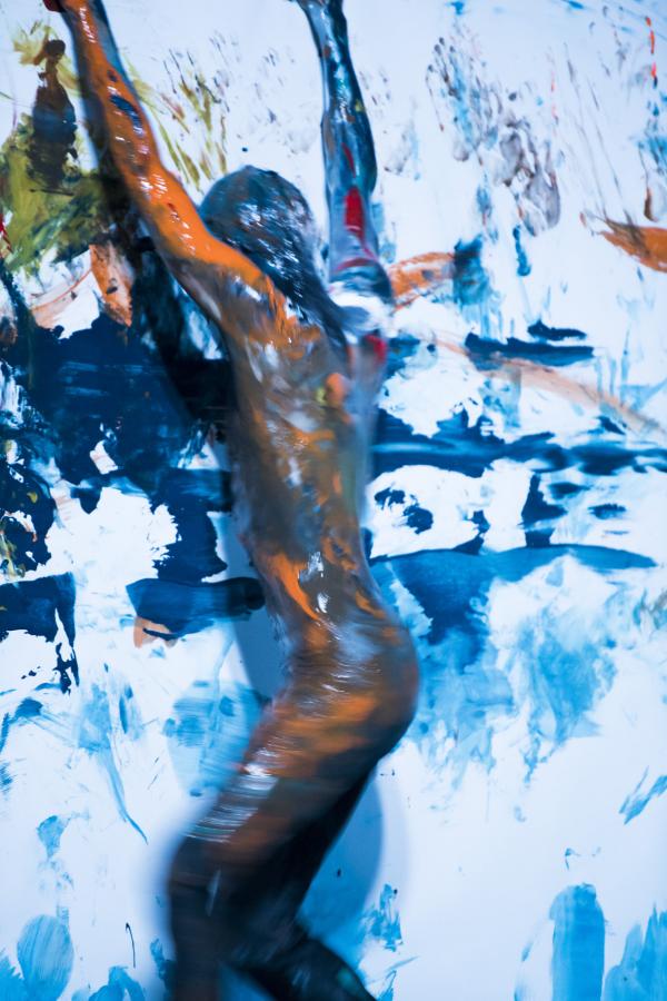 Car enfin, lorsqu'un corps est entièrement dégoulinant de peintures, à travers lesquelles il fait œuvre de peinture sur les surfaces, le triomphe de ce travail débouche sur une indétermination entre le corps et sa figure et sa trace. Accessoirement, les vieilles balivernes s'en trouvent démantibulées, qui pérorent sur de supposées oppositions entre intériorité et extériorité, toujours prospères dans les discours peu réfléchis ayant cours dans la danse. Le corps performatif est en soi une interface de fonction perceptive et projection fictionnelle. C'est la couche vivante qui importe. Son interaction. Non sa surface ou son fond. Impossible de cadrer cela dans une conception binaire.
