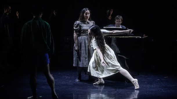 Mais c'est l'articulation qui fait problème – un peu à l'image de la lumière du pianiste qui casse tout dans le tableau. Longtemps réduit, pour l'essentiel, à des déambulations, le déploiment chorégraphique s'encastre, comme il peut, ou plutôt s'empile, dans l'interprétation musicale et chantée, plutôt monocorde, hésitante. Et tout est écrasé par le recours maniéré à un tulle de front de scène, sur lequel sont projetées d'immenses images emphatiques, d'une "modernité" datée, qui finissent par noyer le tout.
