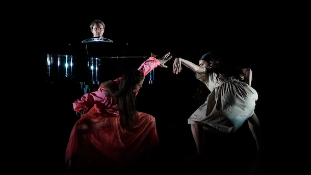 Si on se renseigne après coup sur l'intention dramaturgie, on apprend que le pianiste incarne ici la figure du père. Centrale. Et que bien évidemment, son incapacité à entrer dans la danse dit son état de pétrification mortifère, laissant aux seuls danseurs le soin d'incarner l'envol des âmes survivantes. Soit. C'est donc ce que raconte la pièce. Mais il y a ce qu'elle fait, ce qu'elle produit, dans son action sur scène.