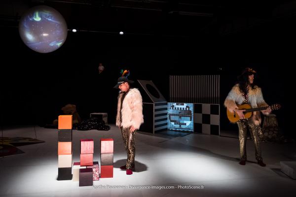 Lionel Hoche nous introduit à son tour dans ses souvenirs d’enfance et d’adolescence, avec un duo dansé-chanté pour lui-même et Adam Vidovic, musicien et alter ego qui ne se cantonne pas derrière son piano mais revêt, accessoirement, certains des nombreux objets qui envahissent le plateau.