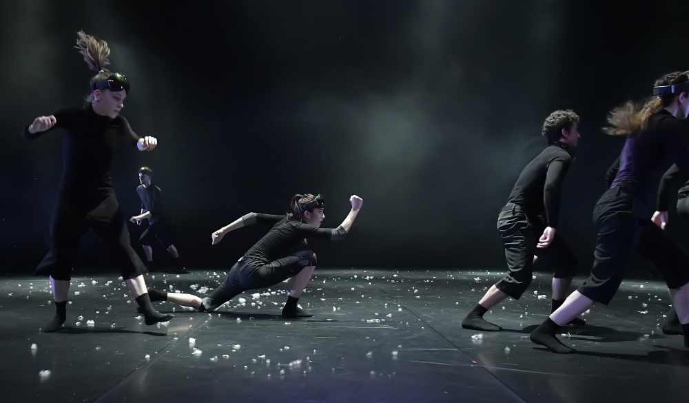 Résolument contemporain, Willy met en avant le groupe, dans un langage chorégraphique aux résonances mécaniques, expressives et parfois burlesques. Dans leurs uniformes noirs, munis d’énormes lunettes noires qui évoquent les casques de réalité virtuelle, ils forment un bataillon qui n’est pas sans évoquer, au premier tableau, les robocops dans Roméo et Juliette de Preljocaj, revus par un dessinateur de mangas.