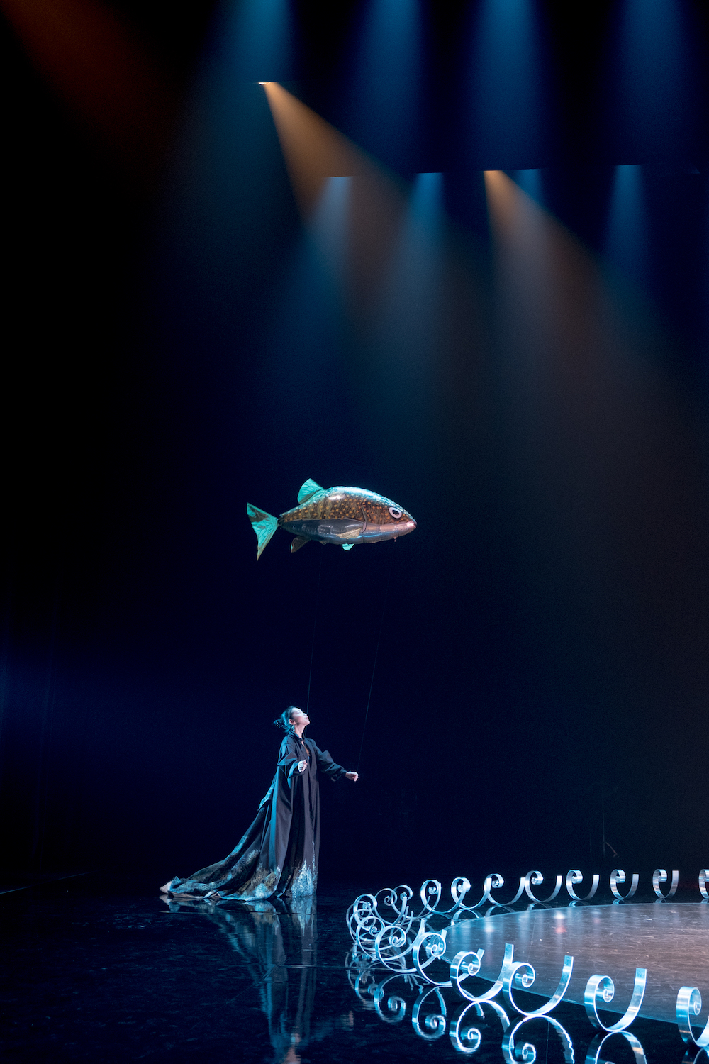 Autant dire que la bonne surprise de la soirée est venue de la chanteuse Ana Sato, originaire de l’île d’Amani-Oshima, au large de Kyushu, accompagnée du joueur de Taiko, Kaoru Watanabe. D’une élégance absolue, vêtue d’une robe d’apparat et d’un manteau à traîne, elle a interprété des airs ancestraux, transmis par son grand-père, dans un dialecte qui a quasiment disparu, des mélopées qui continuent de nous atteindre.
