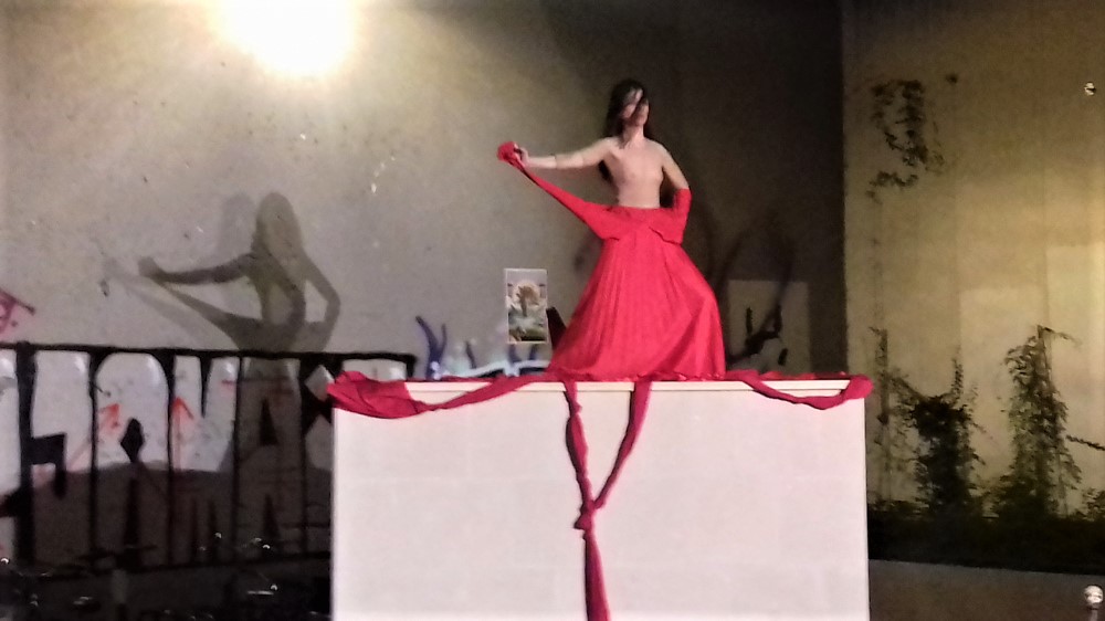 Entre ses références au soleil levant, Akaoni peut aussi nous rappeler Médée ou la menstruation. Au choix. Dans tous les cas, ce n’est pas rien que de s’exposer ainsi en montant sur Le Socle, lieu de rue consacré à l’art contemporain, un soir de février sous le regard des passants qui profitent des soldes d’hiver. En bravant les adversités diverses, Aka Oni ne revendique rien de manière explicite, sauf le droit de faire apparaître la féminité comme on veut, où on veut. Une façon de chasser les esprits machistes?