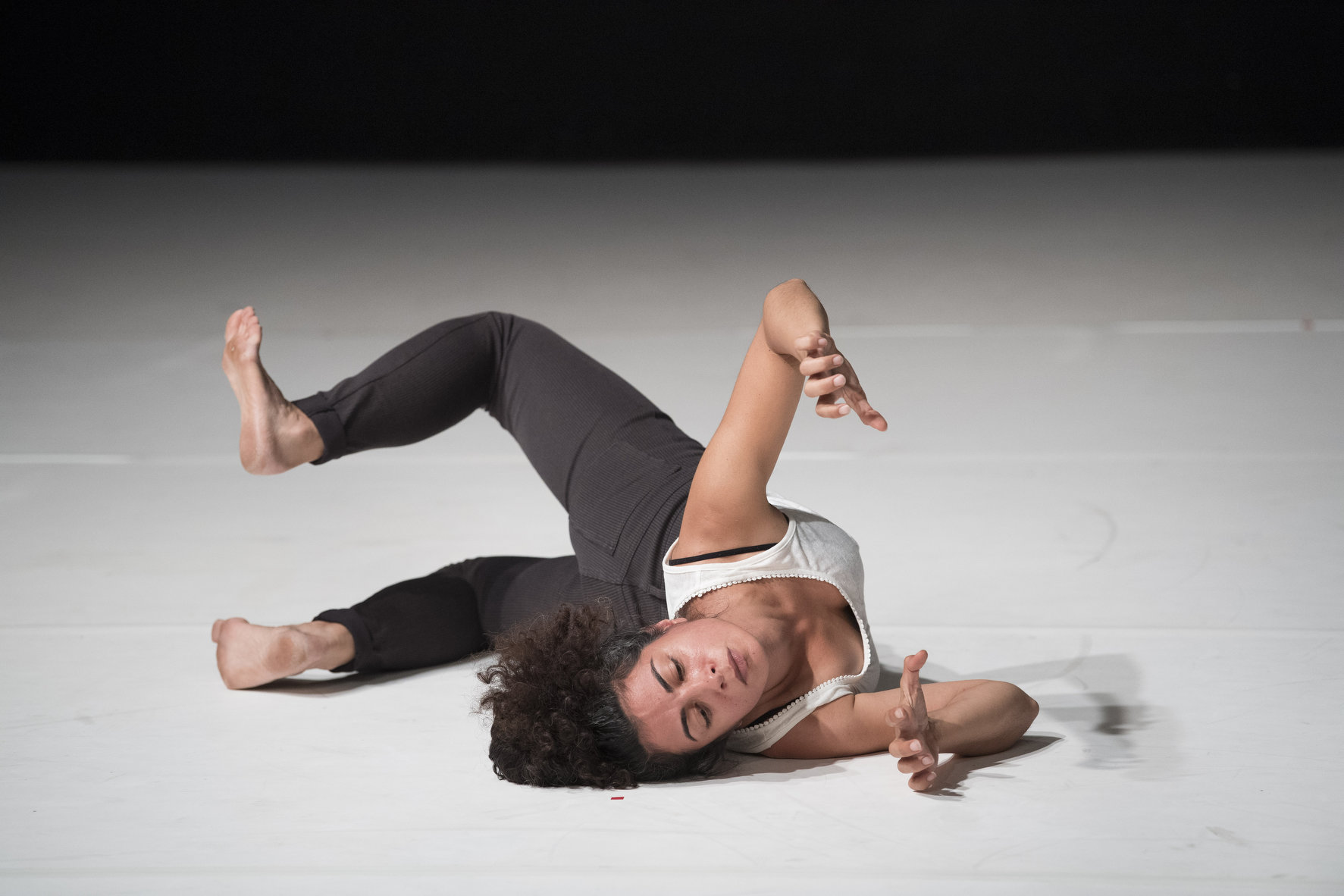 L’idée de Sérénités reste vivante, dans Sérénités était son titre. Un duo où se racontent l’essence et l’histoire d’une pièce qui n’a existé qu’en répétitions. Des cris muets déchirants, des corps plaqués au sol qui éprouvent la pesanteur d’un monde à laquelle ils doivent arracher le moindre mouvement. Entre autres… Il en reste des fragments, à deux, et la présence imaginée de Ghida Hachicho, comme si nous assistions à une cérémonie pour le trio qui devait se créer en juin.