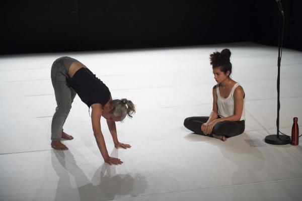 La danse montre ici tout son potentiel de résilience, sa souplesse et sa capacité de s’adapter aux circonstances les plus adverses. Hammoud et Youcef reviennent aux fondamentaux, au corps et à la voix, dans une forme contemporaine de la tradition du conteur, sans recourir aux médias, sans transformer leur rite contemporain en spectacle-conférence. Les corps et les voix partent d’un seul et même engagement du sensible, où le récit est aussi chorégraphique que la danse sait créer des images. Quand les deux protagonistes se figent à nouveau, en légère torsion et le buste penché en arrière, surgit un tourbillon suspendu, tout aussi strident et vertigineux que le cri muet l’accompagnant.