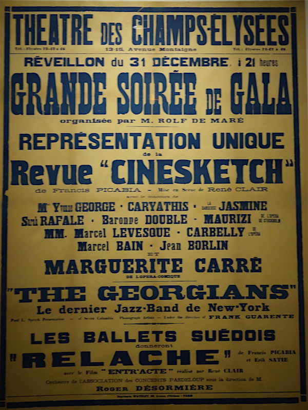 Relâche, avec Ciné-Sketch, un bonus pour la fin de l’année 1924, mettra un terme à la fois à Dada et à l’aventure des Ballets Suédois. Séparé de Rolf de Maré, soutenu par la mécène Hermine Jourde, Jean Börlin finit sa courte vie à New York, victime d’une cirrhose du foie. Ses cendres se trouvent au Père-Lachaise, entre les avenues Aquado et Carette.
